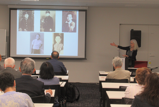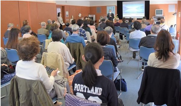講演は日本語で画面を説明しながら話すサザードさんと、長崎の「永遠の会」の方の朗読が入る形で行われた。朗読は5人の被爆者の様子や感情を語り、会場の聴衆に臨場感を感じさせた。