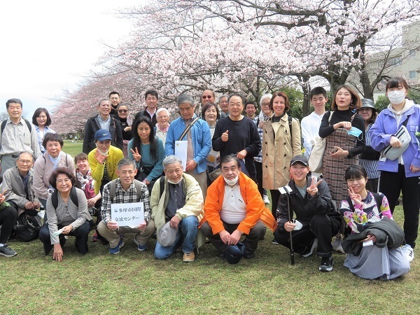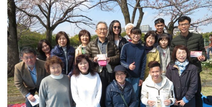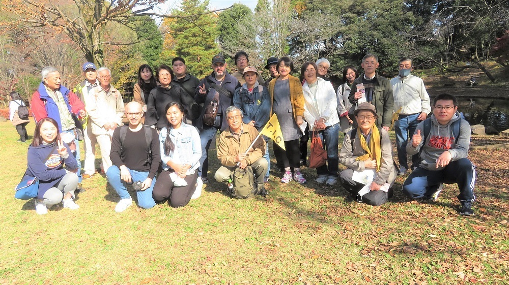 午前10時半、小田急多摩センター駅改札前に集合しました。参加者はベトナム4名、アメリカ人1名、日本人14名の計19名です。場所取りを先発隊に任せ、遊歩道を散歩しながら宝野公園へ。到着して各自公園内を散策した後、皆でお弁当タイム。簡単に自己紹介をして歓談した後、日本語セミナー部員、外国語セミナー部員らの協力のもと、ハンカチ落としやじゃんけんゲーム(家庭の不用品を賞品)をして興じた。