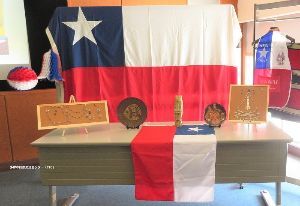 またロサさんが持参した大きい国旗は独立の象徴である血の赤、アンデスの雪の白、高く広がる青い空の3色が主なカラーです。
