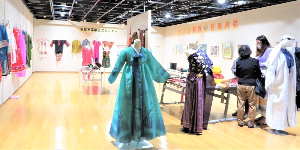 今年度は「世界の民族衣装と民芸品」をテーマに外国人を含む会員から民族衣装を提出してもらった。皆さん様々な国の衣装をお持ちで、予想したよりもたくさんの衣装が集まり、全てを展示できないくらいだった。衣装の展示なのでマネキンのボディにも衣装を着せてより洋服を引き立てるようにした。集まった展示物は民芸品なども含め72点。アジアの各国はもとより、アラビア圏、南米、ヨーロッパの国々とバラエティーに富んで、見に来た方々の質問も多かった。市長をはじめ、副市長、教育委員長、市議会議長等市の方々も見に来てくださった。外国のことを知る方法は様々だが、衣装など具体的なものを見て外国の雰囲気などを実感していただいたかと思う。提供者のご好意でブルカの試着ができ、皆さん興味を持って試着していた。ギャラリーの受付、片付けなどの人数、延62人。