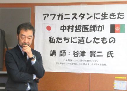 後半は谷津賢二氏の中村哲医師についての講演で、中村哲医師の声を聞きながらアフガニスタンの地、そこで暮らす人々のビデオ、谷津氏の現地取材の話などは参加した多くの人から、とても良かったとの感想がありました。