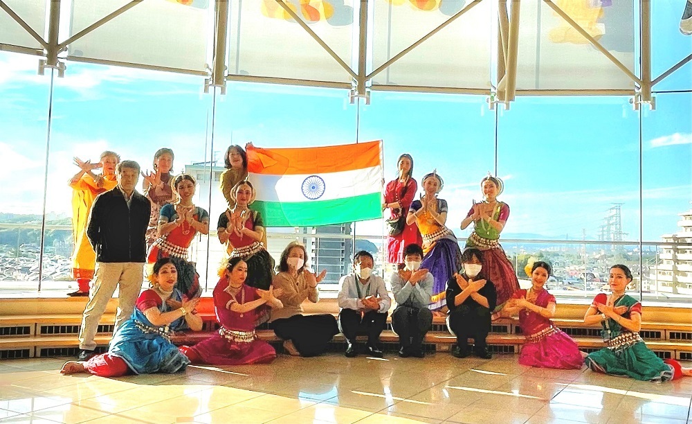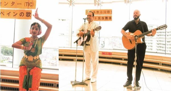 市民ロビーでの2時半からの外国人のパフォーマンス。最初は「レスミダンスグループ」によるインドの古典舞踊。7人のダンサーが、手、指、首の動きと顔の表情も豊かに、華やかなダンスを披露。続いてはスペインのホルヘさんとギタリストのセバスティアンさん。会話も巧みなディアスさんは皆さんとおしゃべりしながら、スペインの歌や日本人にも懐かしいラテンミュージックを。素晴らしい声は会場の皆さんを魅了しました。