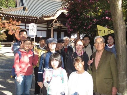 外国人5人を含む13人の参加者で、京王線調布駅に集合。行楽日和のこの日、バスの中は混雑していましたが、話に花を咲かせて各々が楽しげな様子。30分程で到着し、門前を抜けて深大寺境内へ。